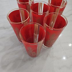 1960s Culver Red Gold Hindu Goddess Highball Glass Tumblers Oriental Set of 6$30Temple, TX