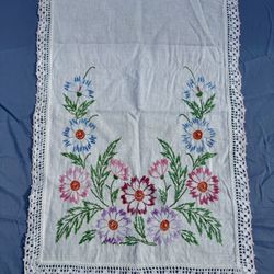 VTG Floral Dresser Scarf Table Runner Hand Embroidery 14x42 Lace Trim Multicolor$25Temple, TX