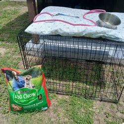 Dog Cage And Bowls With Stand$45Killeen, TX