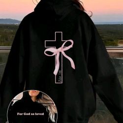 Size S,L,XL,XXL Women’s Christian Hoodie Black Pink Cross Bow John 3:16 Long Sleeve Sweatshirt$25Harker Heights, TX