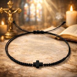 Men’s Black Beaded Cross Bracelet Adjustable Casual Faith Jewelry$7Harker Heights, TX