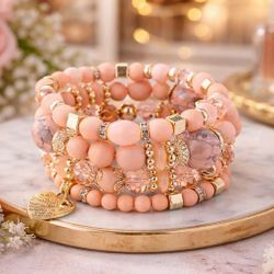 4Pcs Bohemian Pink Glass Beaded Bracelet Set Heart Pendant Multi-Layer Women's Jewelry$8Harker Heights, TX