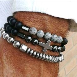 3pcs Men Women Beaded Bracelet Set Cross Pendant Stretch Matte Stone Jewelry$8Harker Heights, TX