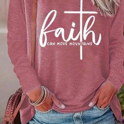 Sizes S,M,L,XL,XXL Women Faith Can Move Mountains Long Sleeve Crew Neck T-Shirt Coral Pink $15Harker Heights, TX