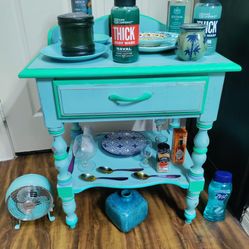 Hand-painted Detailed ANTIQUE Aqua & Blue Solid WOODEN WASH STAND / Vanity Table Measures 22.5" L x 16.5 W x 25" H$115Morgans Point, TX
