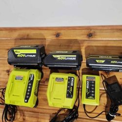 (3) Ryobi 40V batteries, (3) chargers$285Morgans Point, TX