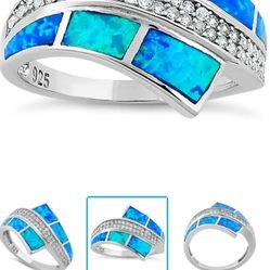 Elegant Blue Lab Opal Clear CZ Band Ring sizes 5-10$27Temple, TX