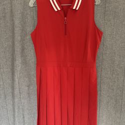 TORY BURCH Sport Red And White Zip Collar Performance Pleated Golf Dress L = 12 $115Temple, TX