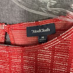ModCloth Red White Metallic Shift Dress Textured Loose Puff Sleeves Medium Women$24Temple, TX