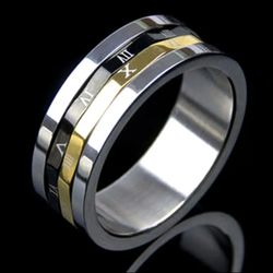 Men's Tungsten Tri-Color Roman Numeral Comfort-Fit Daily Wear Fashion Band$18Houston, TX