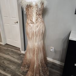 Formal elegant Sequin Gold dress with split and feathers Very beautiful dress$300Humble, TX