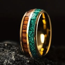 Men's 8mm Tungsten Malachite & Koa Wood Inlay Comfort-Fit Engagement Wedding Band 11$18Houston, TX