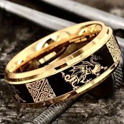 Men's 8mm Tungsten Gold Black Dragon Celtic Knot Engraved Comfort-Fit Wedding Engagement Band 12$18Houston, TX