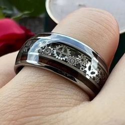Men's 10mm Tungsten Wood Grain Clock Work Design Comfort-fit Engagement Wedding Band 12$18Houston, TX