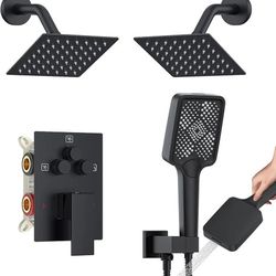 Bathtub Shower System 6-Inch Dual Overhead Rain Showers with 3-Function Handheld Showerhead & Power Jet | Complete Set with Diverter Valve (Matte Blac$149Katy, TX