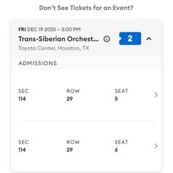 2 Tickets To Trans-Siberian Orchestra Sec 114 $200Houston, TX