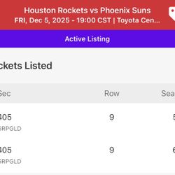 Houston Rocket Vs Phoenix Sun , December 6, 2025$52Houston, TX