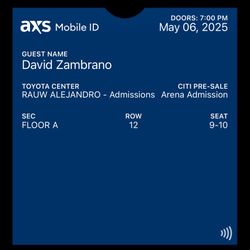 Rauw Alejandro Tickets $1,800Spring, TX