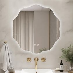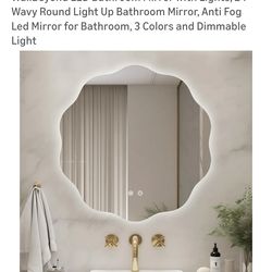 WallBeyond LED Bathroom Mirror with Lights, 24'' Wavy Round Light Up Bathroom Mirror, Anti Fog Led Mirror for Bathroom, 3 Colors and Dimmable Light$68Houston, TX
