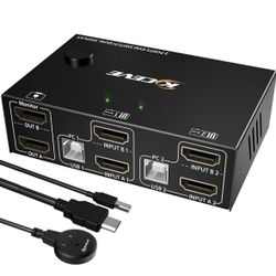 HDMI KVM Switch 4 Computers 2 screen 4K 60Hz 2K 120Hz 4 Port Dual screen KVM Switches for Four PC Share 2 screen and 4xUSB 3.0 Devices with Remote Cnt$100Houston, TX