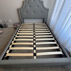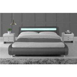 Queen bed- Wave-Like Curve PU Leather Platform Bed Frame with Adjustable Headboard and LED Lights$300Houston, TX