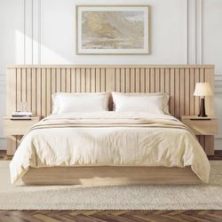 Queen Size Wood Bed Frame with Built-in Nightstands, Modern Fluted Headboard & Storage Drawers, Solid Wood Slat Support, No Box Spring Needed, Noise-F$550Katy, TX