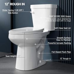Tornado Flush Tall Toilet 17 Inch for Bathroom, Two Piece Compact ADA High Toilet Single Flush 1.28 GPF, Comfort Bowl Height, Chair Height, 12” Rough $235Katy, TX