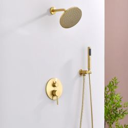 Shower System Gold Shower Faucet Set, 8" Rain Shower Head and Handheld Spray Combo, Round Shower Head and Handle Set (Valve Included), Brushed Gold$95Katy, TX