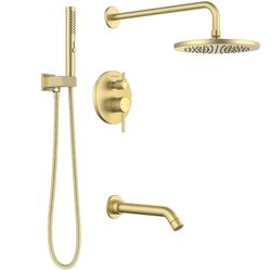 Lava Odoro Modern 3-Setting Round Rain Bathtub and Shower Faucet Set, Gold Rainfall Shower Head and Handle Set, Rain Shower System with Tub Spout, Sho$295Katy, TX