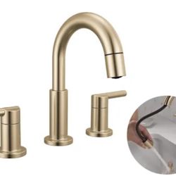 8” Widespread Bathroom Faucet with Pull Down Spout and Push Pop-up Drain in Champagne Bronze$225Katy, TX
