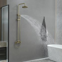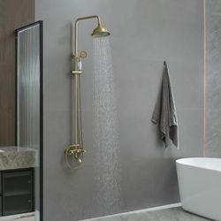 Gold Outdoor Shower Faucet, Exposed Pipe Shower, Bathroom Shower Faucet, 3 Function High Pressure Rainfall Head & Tub Spout, Double Knobs Cross Handle$129Katy, TX
