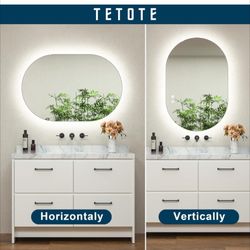 TETOTE 24x36 Inch Oval LED Mirror, Backlit, Anti-Fog, Dimmable, Wall Mounted, Modern Style, Frameless, Metal Frame, Bathroom Wall Mirror$60Houston, TX