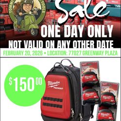 ONE DAY ONLY: Milwaukee Packout Backpack & (2) 25ft Magnetic Tape Measure 2-Packs$150Houston, TX