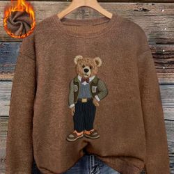 Warm & Comfortable Knitted Gentlemen Bear 🐻 Design, Crew Neck, Long Sleeves Women's Sweater$22Houston, TX