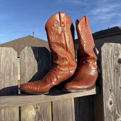 Justin 8307 Teju Lizard Cowboy Boots Mens 9C Cognac Brown Snip Toe Vintage USA$295Houston, TX