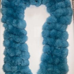 Vintage Genuine Rabbit Fur Scarf Wrap Pom 5”x54” Blue Teal Neck Warmer Soft$35Conroe, TX