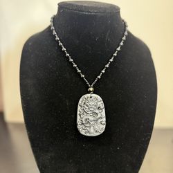 Obsidian Carved Dragon Oval Pendant Necklace with Beaded Chain$20Houston, TX