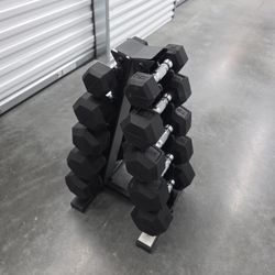 CAP 150 lb Coated Rubber Hex Dumbbell Weight Set with A-Frame Rack$155Houston, TX