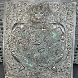 Antique Tibetan Zodiac Repousse Copper Panel Mandala Demonic Deity 19th Century$150Houston, TX