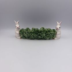 Vintage 1987 Japanese Ceramic Dish / Cracker tray / Celery dish / Candy dish featuring Lettuce Leaves with Rabbits Bunnies. Easter and Spring decor$65Katy, TX