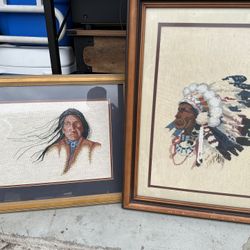 Vintage 80’s Framed Matted Indian Maiden Cross Stitch Native American Wall Art$100Katy, TX