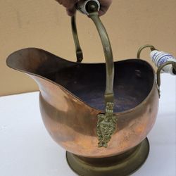 Vintage Delta Copper Coal Scuttle Bucket. Brass Lion Head Accent. Blue/White Delft-Style Porcelain Handles. Holland$80Houston, TX