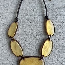 Vintage 1970s Statement Necklace – Amber Tone Resin with Cord$45Houston, TX