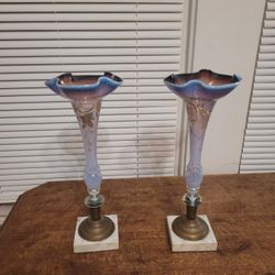 Pair Antique Opaline Glass Trumpet Vases$400Houston, TX