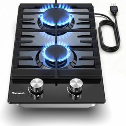12 Inch Gas Cooktop, 18000 BTU 2 Burner Black Tempered Glass Gas Stove, LPG/NG Convertible Dual Fuel, Built-in Propane Stove Top with Thermocouple Pro$100Katy, TX