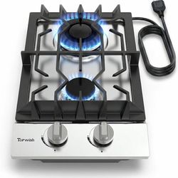 12 Inch Gas Cooktop, 2 Burners Built-in Stainless Steel Propane Stove Top 18000 BTU, LPG/NG Convertible Dual Fuel Hob with Thermocouple Protection for$110Katy, TX