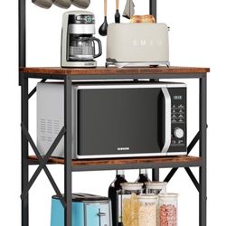 Kitchen Bakers Rack with Hutch, Coffee Bar Station 4 Tiers, Microwave Oven Stand with 6 S Hooks and Pegboard, Kitchen Microwave Rack for Spice Organiz$50Houston, TX