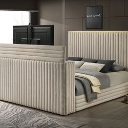 NEW Off White Platform Bed Frame King & Queen Size FITS UP TO 50" TV FIREPLACE$999Houston, TX