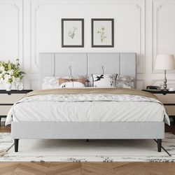 Queen Bed Frame, Fabric Upholstered Platform Bed Frame with Headboard, Sturdy Wooden Slats, No Spring Box, No Noise, Easy to Assemble, Light Grey$115Katy, TX