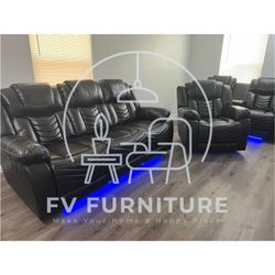 3 Pieces Recliner Living Room Set. LED lights ( Multiple Colors) & USB charger 🔌 $2,500Houston, TX